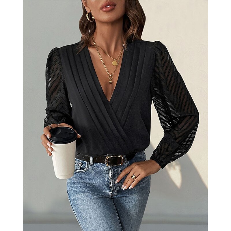 HOT ! Women's Normal Playsuit Stylish Solid Color Long Sleeve V Neck Party Work Regular Fit Black Red Green Spring