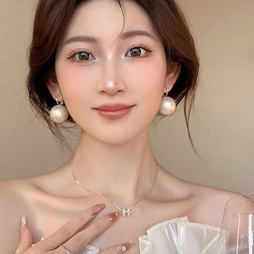 Large Pearl Earrings for Women Dainty 20MM Big Pearl Drop Dangle Earrings Hypoallergenic Gold Hoop Earrings Trendy Birthday Jewelry Accessories Gifts