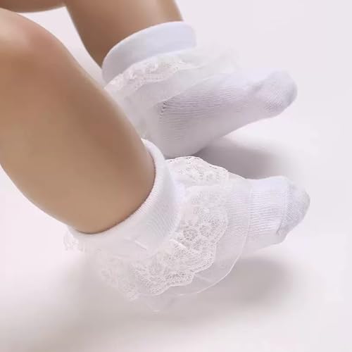 HOT ! Newborn Baptism Socks Infant Turn Cuff White Christening Cotton Sock With Eyelet Ruffle Lace and Cross, 0-12 Months