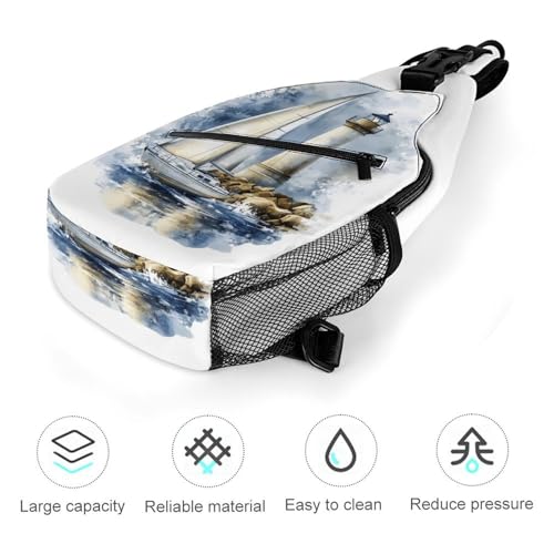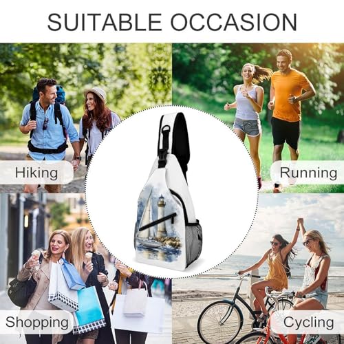 Lighthouse Tower Sea Sail Boat Crossbody Sling Backpack Casual Chest Bag Fanny Pack for Women Men Travel Hiking 7
