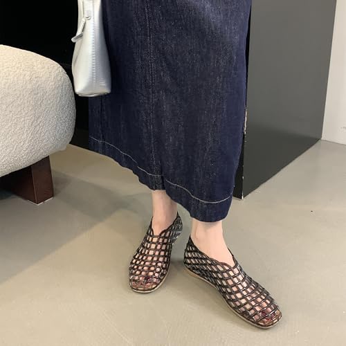 Jelly Mesh Ballet Flats for Women Clear Hollow Jelly Shoes Sandals Round Toe Non-Slip Beach Ballerina Jellies Flats Shoes