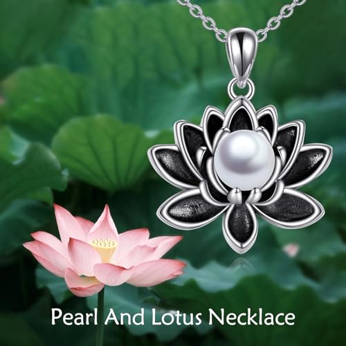 TIGER RIDER Lotus Necklace 925 Sterling Silver Pearl Pendant Necklace Black Lotus Flower Jewelry Gifts for Women 4