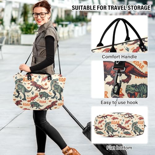 Cartoon Dinosaur Yellow Large Travel Duffle Bag Weekender Overnight Bags Gym Yoga Bag for Women Men with Toiletry Bag 7