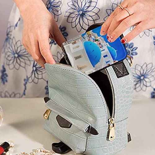 HOT ! Oia town on Santorini Island Greece Famous houses and ChurchesGrey Credit Card Coin wallet, RFID Blocking Compact Women Leather Card Holder, Key Change Organizer, Zipper Purse Clutch Pouch