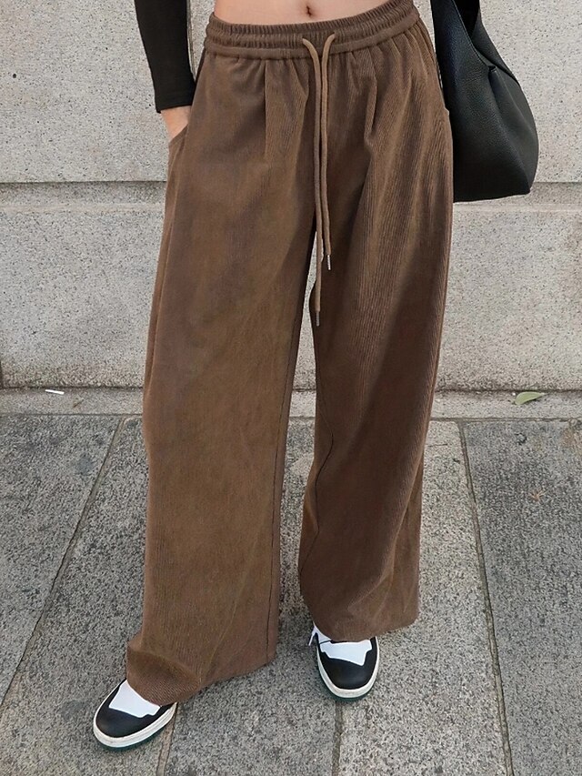 More information about Women's Culottes Wide Leg Chinos Streetwear Casual Full Length Medium Waist Plain Drawstring Pocket Comfortable Micro-elastic Outdoor Vacation Street Brown Fall Winter Loose Fit