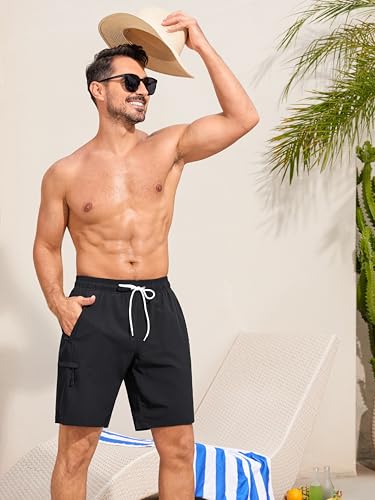 SILKWORLD Mens Swim Trunks with Compression Liner rapid Dry 9" Bathing Suit Summer Beach Swimming Shorts with Zip Pockets