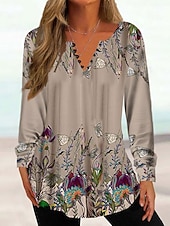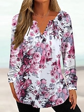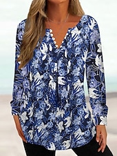 More information about Women's Tunic Shirt Henley Shirt Blouse Tunic Basic Floral Buttons Print Long Sleeve Regular Tops Round Neck Casual Holiday Blue Fuchsia Brown Khaki Spring Fall Prefall