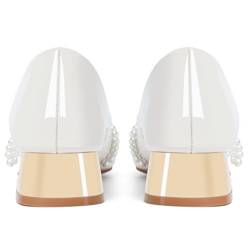 Womens Low Heel Comfortable Pearl Dress Wedding Shoes for Office Work Pumps 4