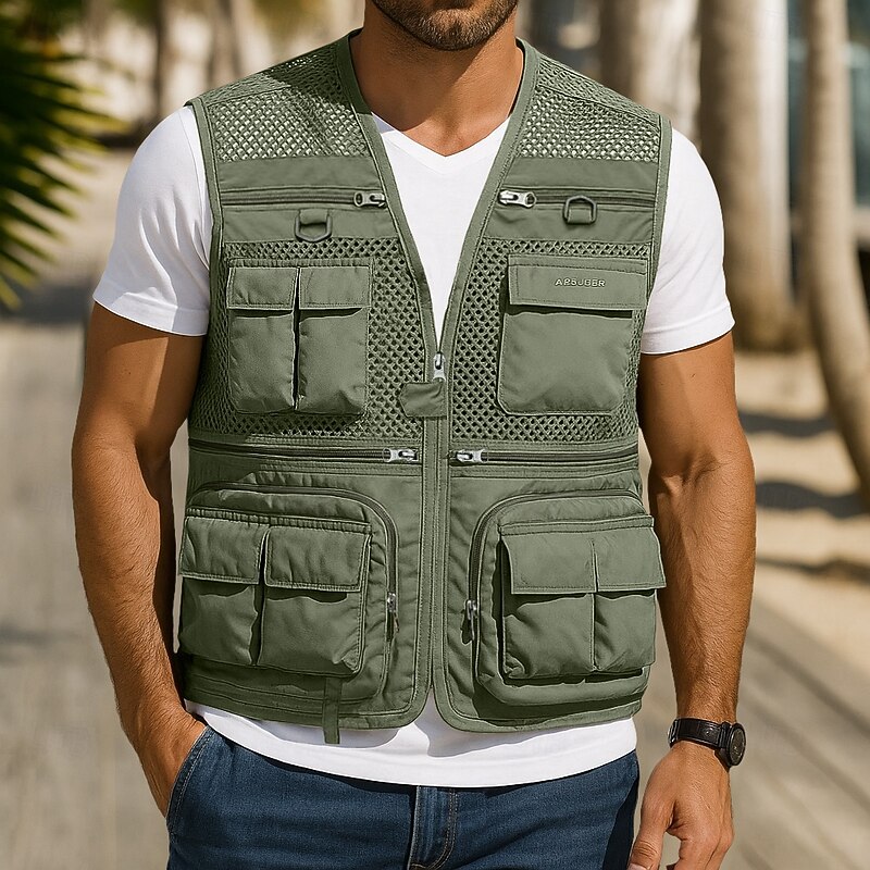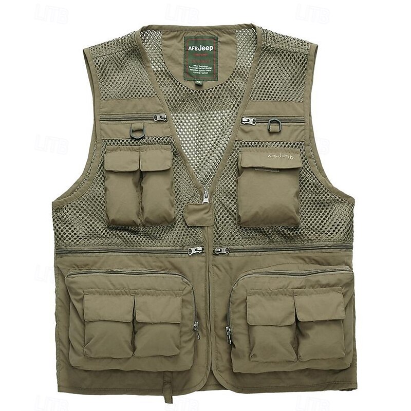 More information about Men's Outdoor Vest Tactical Jacket Outdoor Sports Outdoor Fishing Camping & Hiking Active Casual Summer Spring Multi Pocket Multi Layer Polyester Mesh Tactical Zipper V Neck Regular Fit Black Red
