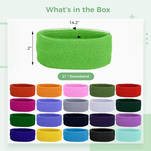 More information about 21-Piece Colorful Sports Headbands, Sweat-Absorbing Athletic Bands for Running, Yoga, Basketball, Hiking, Unisex, High-Stretch Design