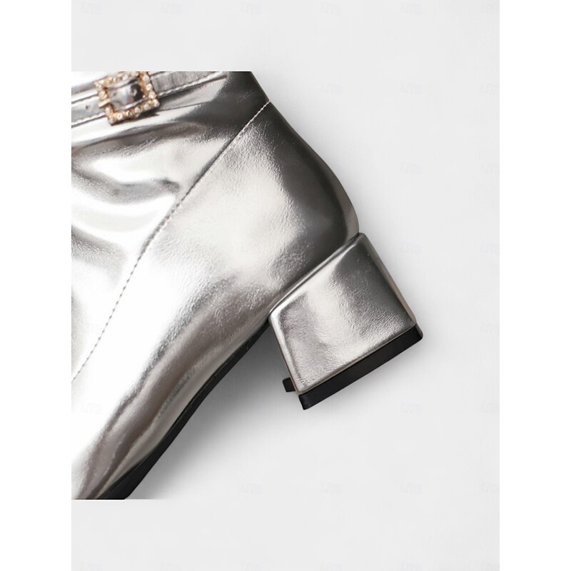 Women's Silver Shiny Knee High Go Go Boots with Side Zipper and Block Heels, Retro 70s Disco Style Party & Dance Boots 3