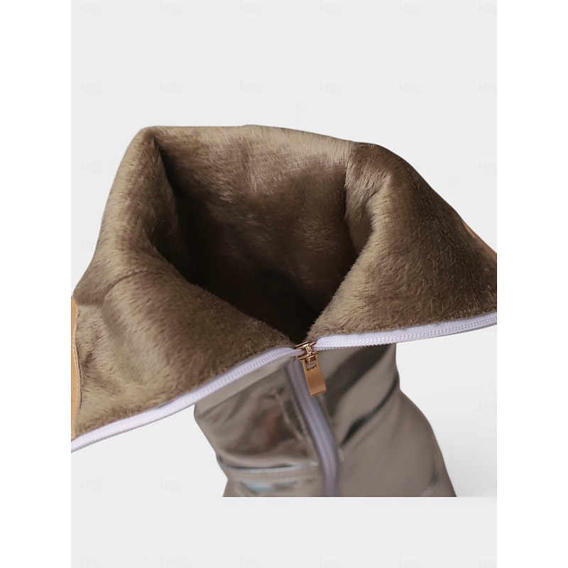 Women's Silver Shiny Knee High Go Go Boots with Side Zipper and Block Heels, Retro 70s Disco Style Party & Dance Boots 4