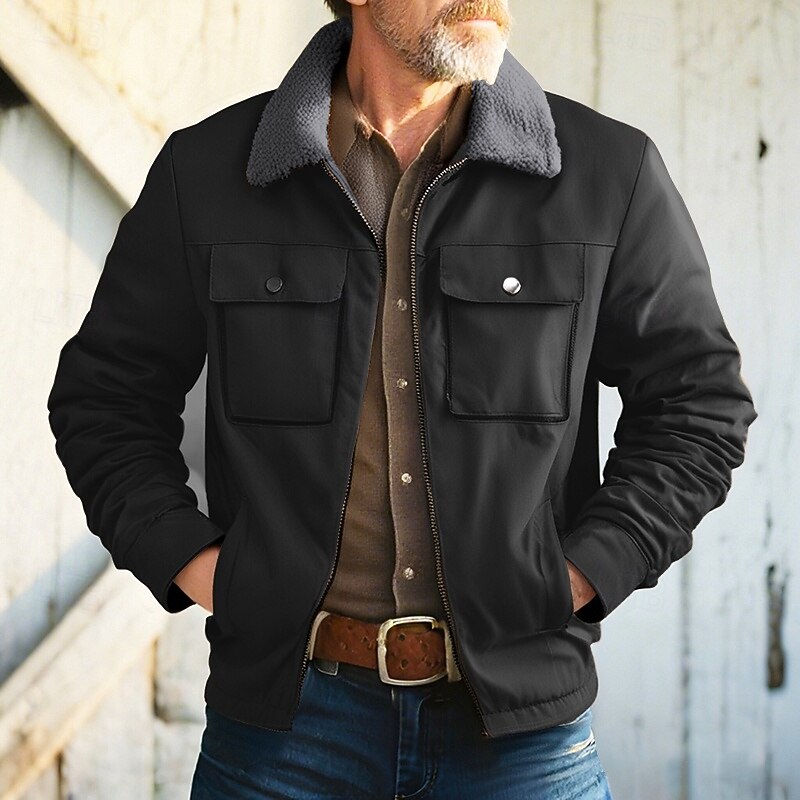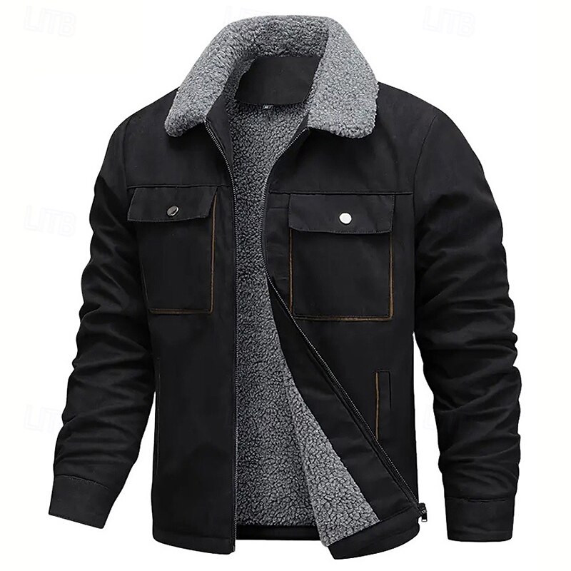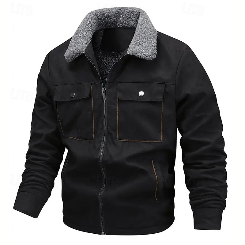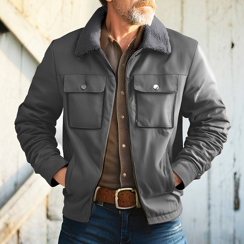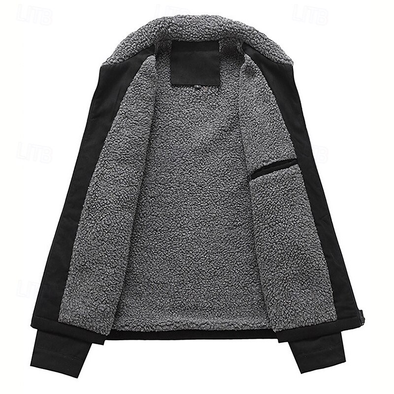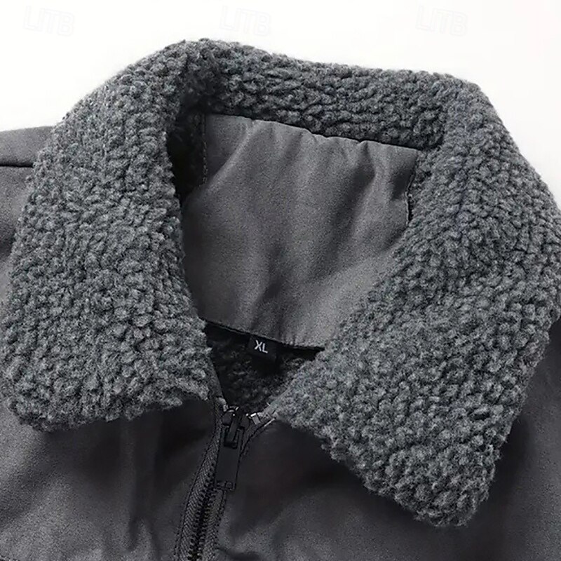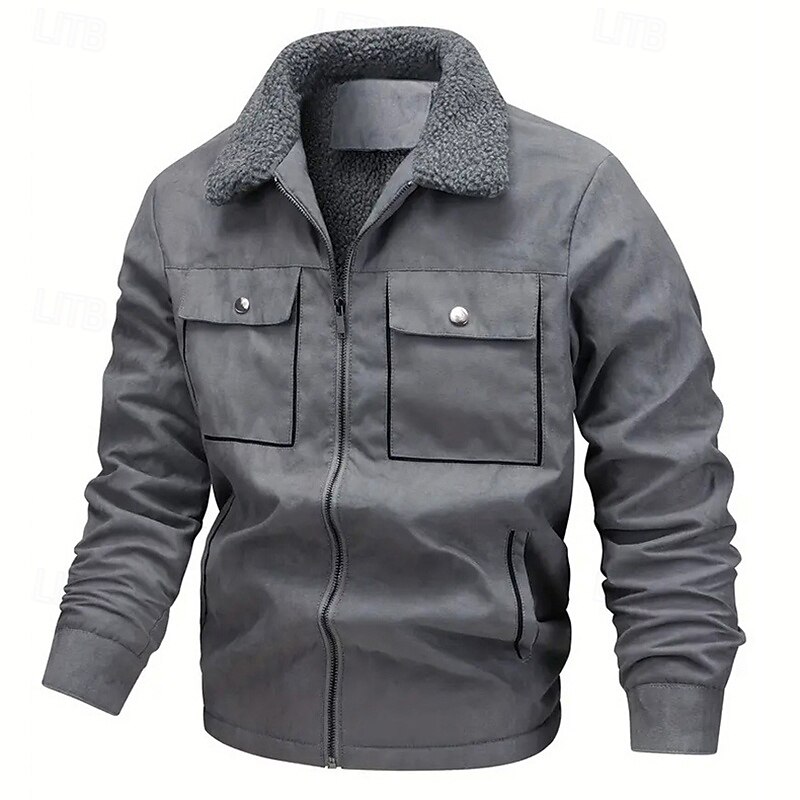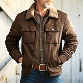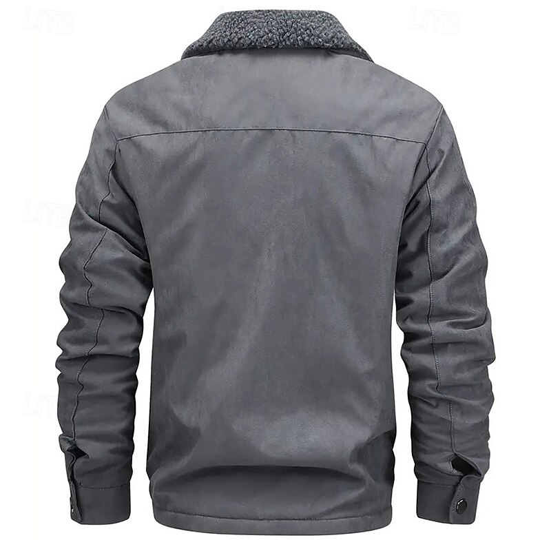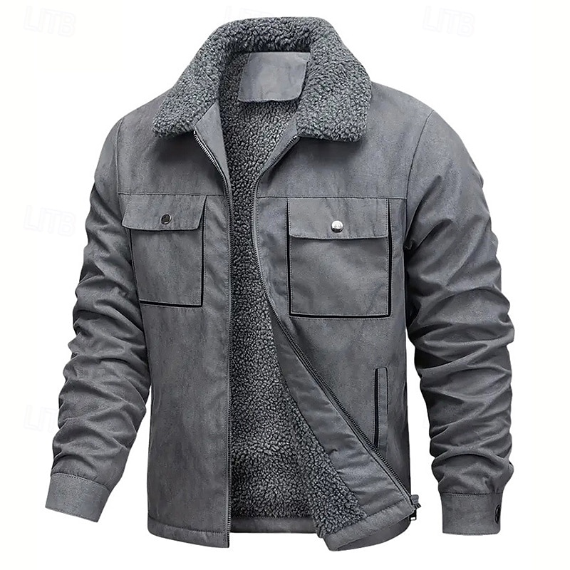 More information about Men's Faux Suede Jacket Winter Jacket Fleece Jacket Casual Jacket Vacation Daily Thermal Warm Pocket Fleece Fall Winter Plain Fashion Streetwear Lapel Regular Black Coffee Gray Jacket