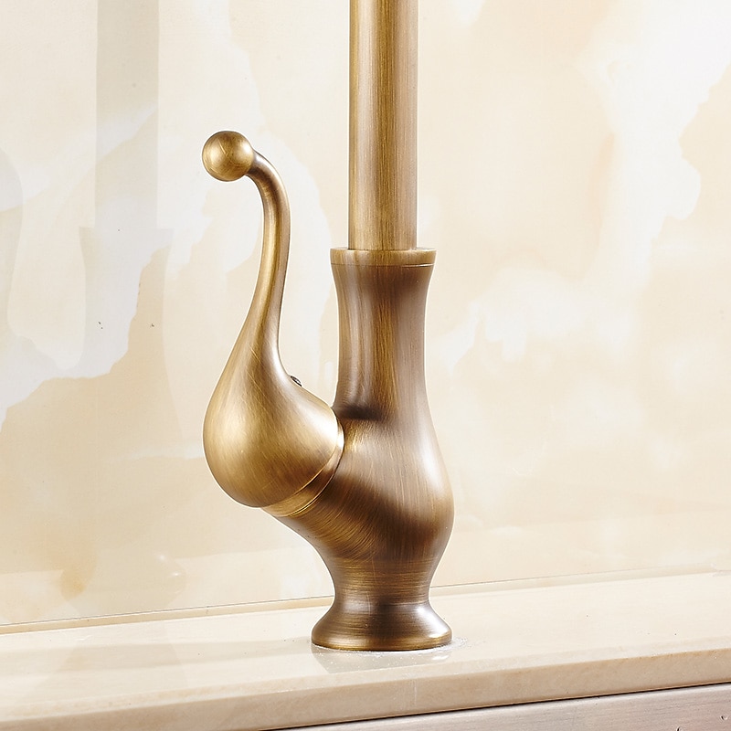 Traditional Kitchen Sink Mixer Taps Deck Mounted Brass, Vintage Retro Kitchen Faucet Single Handle Standard Spout Vessel Tap 9