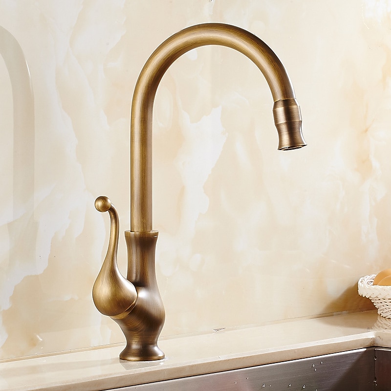 Traditional Kitchen Sink Mixer Taps Deck Mounted Brass, Vintage Retro Kitchen Faucet Single Handle Standard Spout Vessel Tap 1