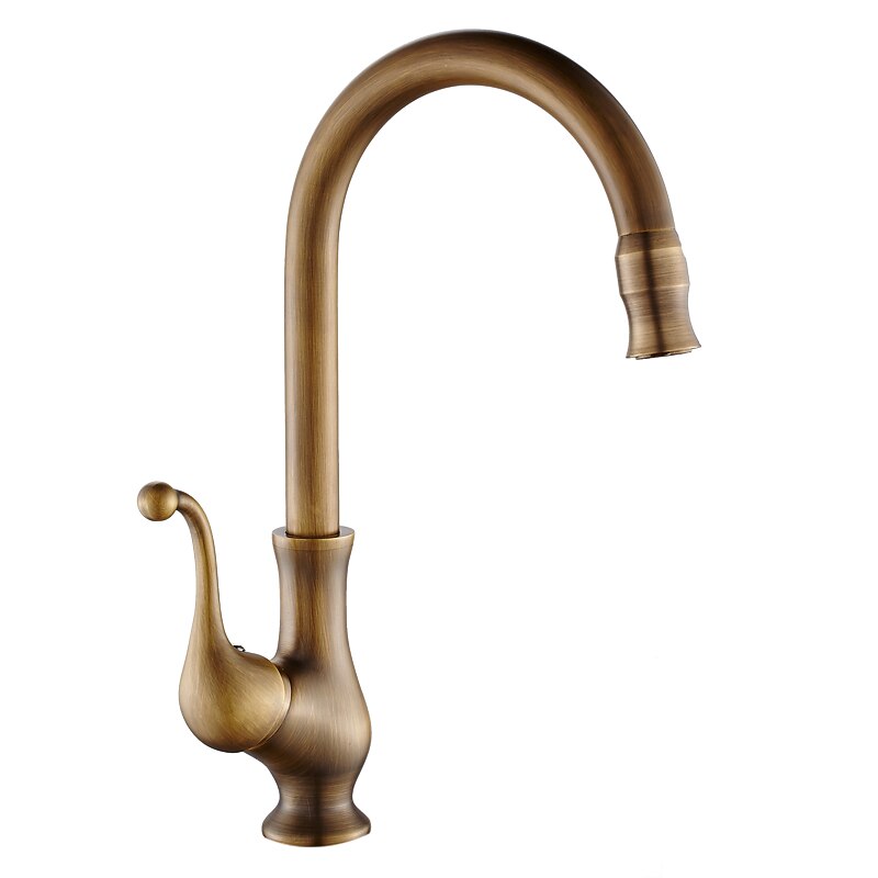 Traditional Kitchen Sink Mixer Taps Deck Mounted Brass, Vintage Retro Kitchen Faucet Single Handle Standard Spout Vessel Tap 8