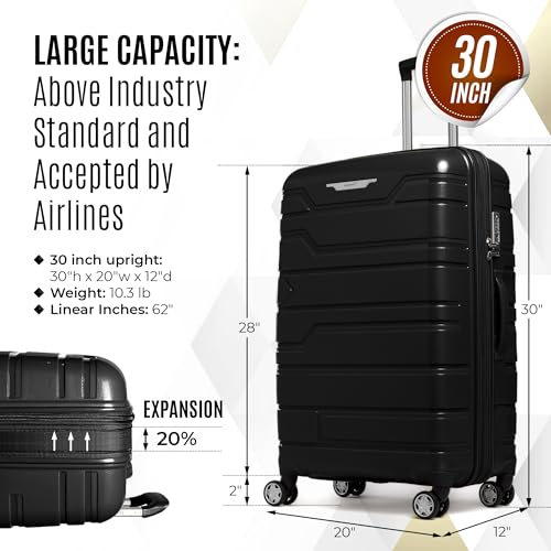 HOT ! GABBIANO Unbreakable Hardshell PP Luggage Set Extra Large with 8 Wheels Thick Shell Multi Layer PP (Black, Large Checked 30 Inch)