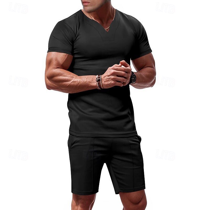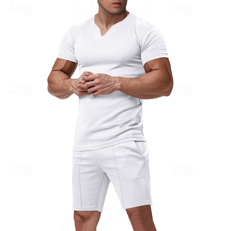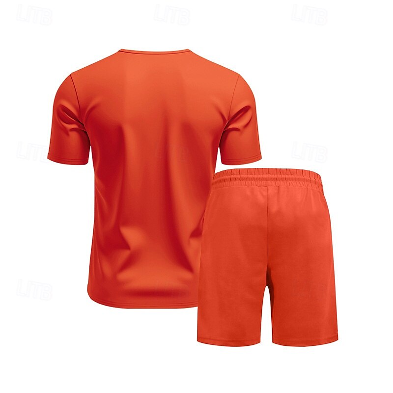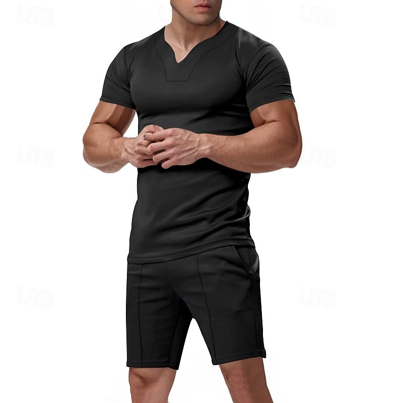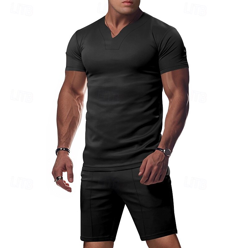 More information about Men's T-shirt Suits 2 Pieces Outfits Tee & Shorts Short Sleeve V Neck Summer Plain Fashion Casual 2 Piece Vacation Daily Wear Going out Black White Orange Top Tee for Men