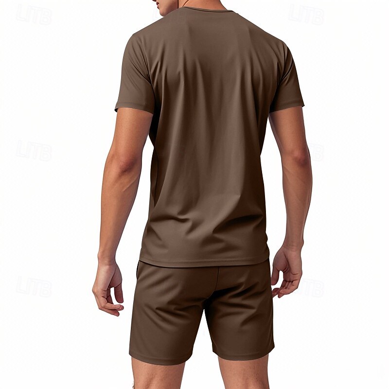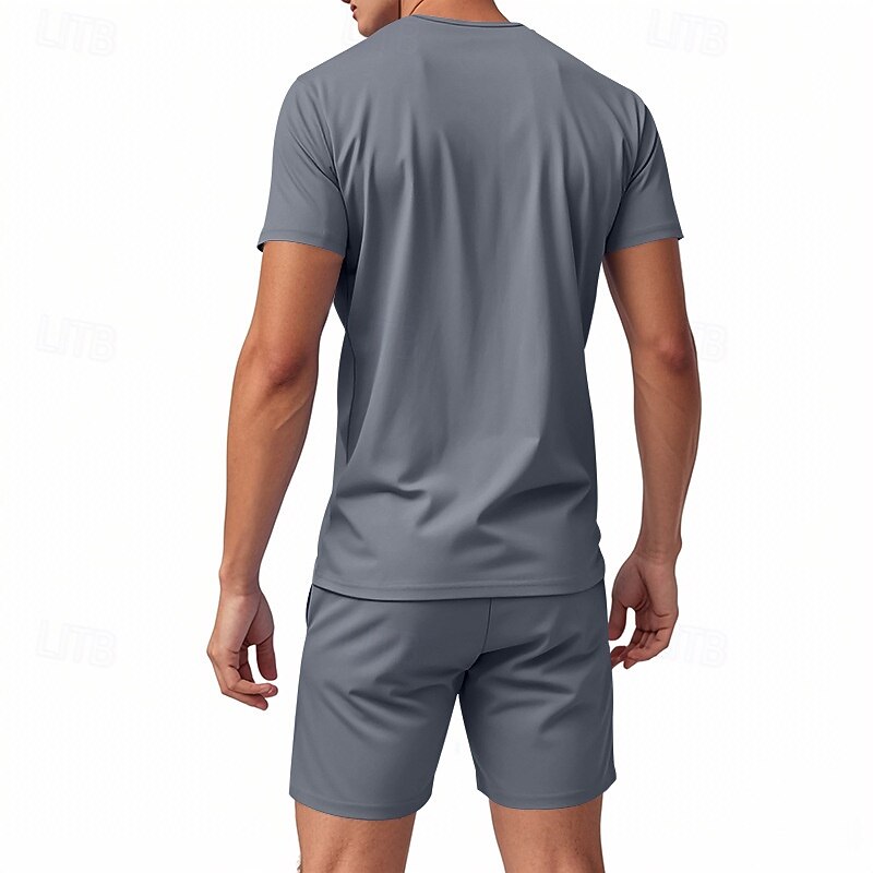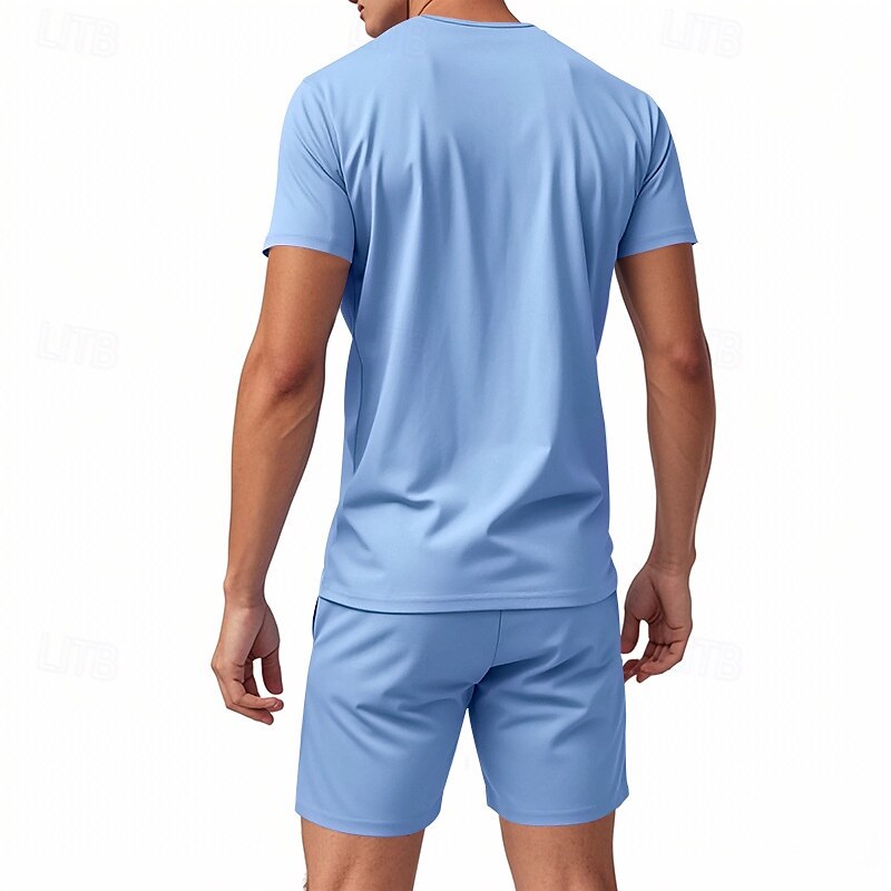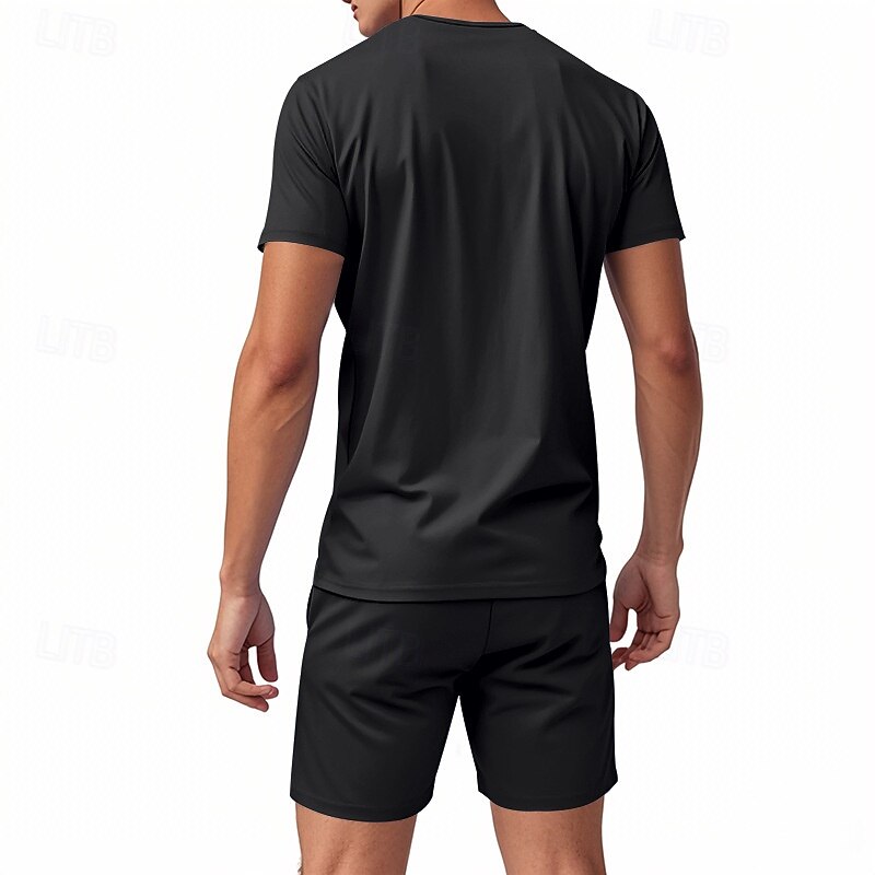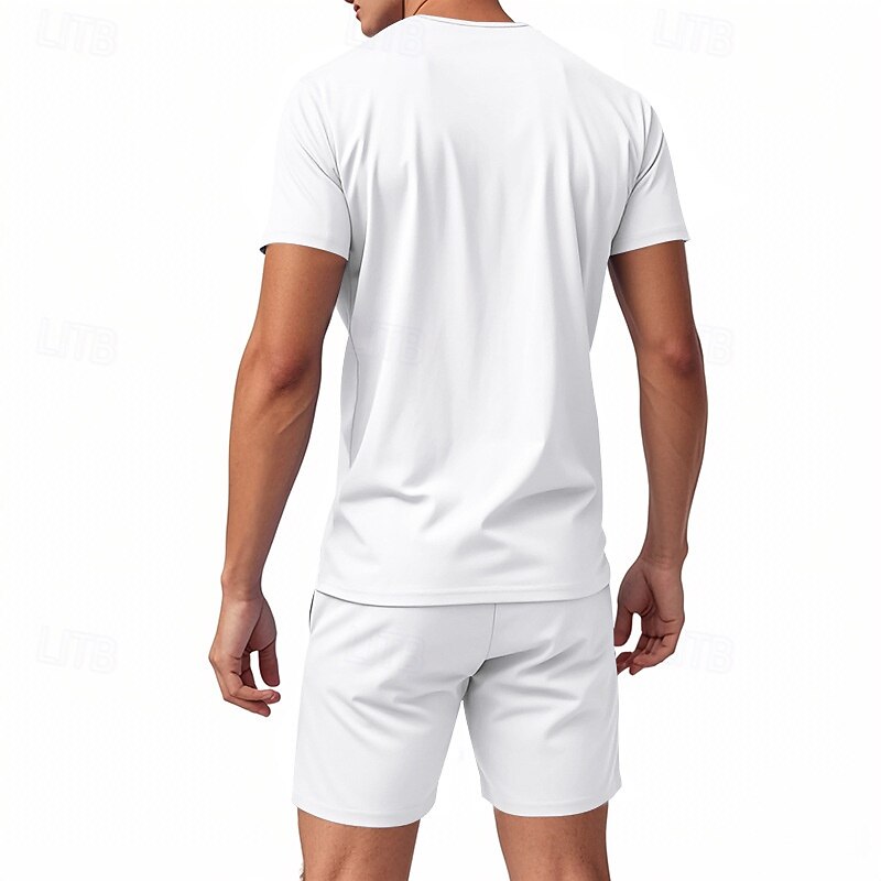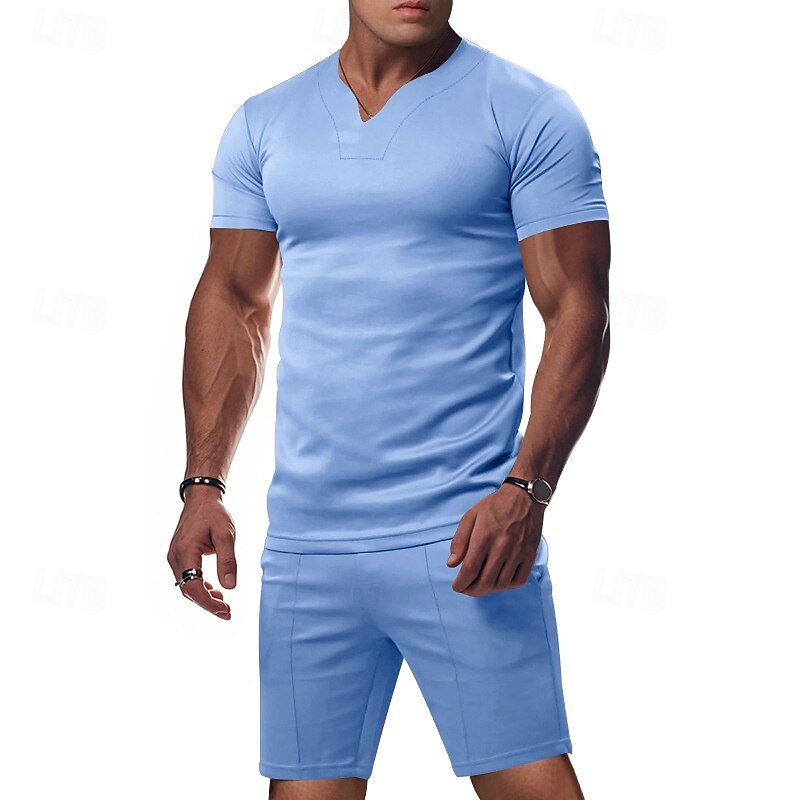More information about Men's T-shirt Suits 2 Pieces Outfits Tee & Shorts Short Sleeve V Neck Summer Plain Fashion Casual 2 Piece Vacation Daily Wear Going out Black White Orange Top Tee for Men