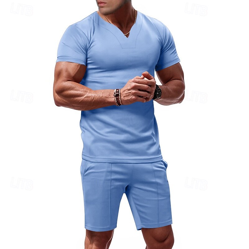 HOT ! Men's T-shirt Suits 2 Pieces Outfits Tee & Shorts Short Sleeve V Neck Summer Plain Fashion Casual 2 Piece Vacation Daily Wear Going out Black White Orange Top Tee for Men