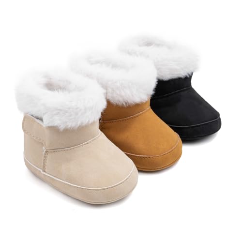 HOT ! LONSOEN Baby Sherpa Fleece Booties, Soft Sole Crib Shoes for Infant Boys Girls, Faux Suede Warm Booties with Hook & Loop Stay-On Cuff, Newborn Prewalker House Slippers, 0-18 Months