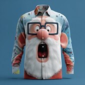 Christmas Men's Santa Claus 3D Cartoon Smile Face Shirt Button Up Shirt Long Sleeve Funny Outdoor Holiday Spring Fall Turndown 3D Print Collared Shirts Blue 1# Blue 6