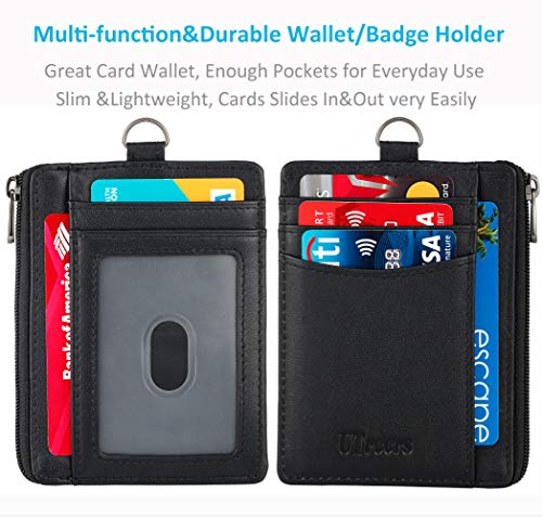 Badge Holders Mens Lanyard Wallet Genuine Leather Slim Card Wallet with Zipper RFID Blocking Card Holder … 6