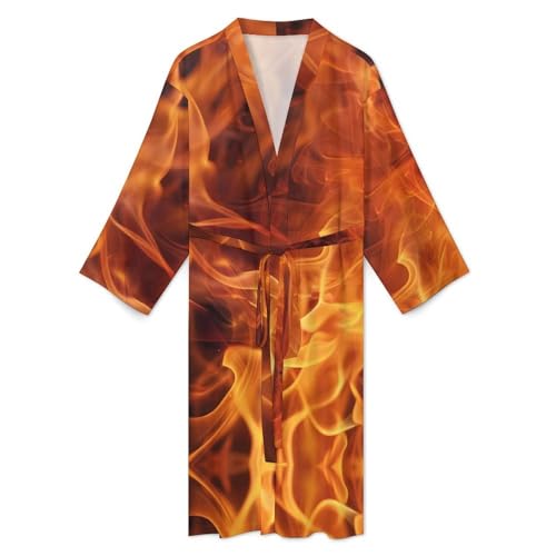 HOT ! Burning Flames Funny Men's Robe Novelty Soft Lightweight Bathrobe Long-sleeve Spa Robes