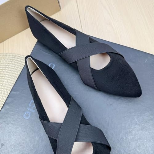 SAILING LU Women's Pointed Toe Flat Shoes Lightweight Dress Flats Cross Ankle Strap Ballerina Shoes Soft Walking Flats 5