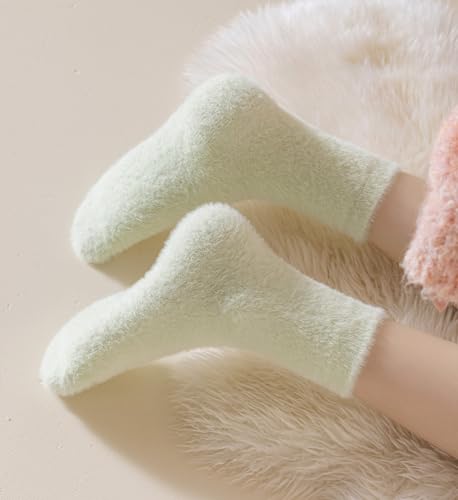 • Size & Color - Our chunky socks are designed to fit womens sizes 5-11. The elastic top is not too tight, ensuring a comfortable experience during daily activities or sleeping. This set includes four pairs of fleece socks in various colors, including green, yellow, white, and pink. So, you can choose the color that suits you the best.