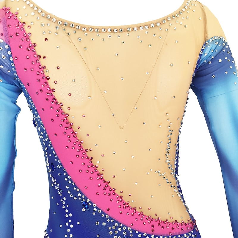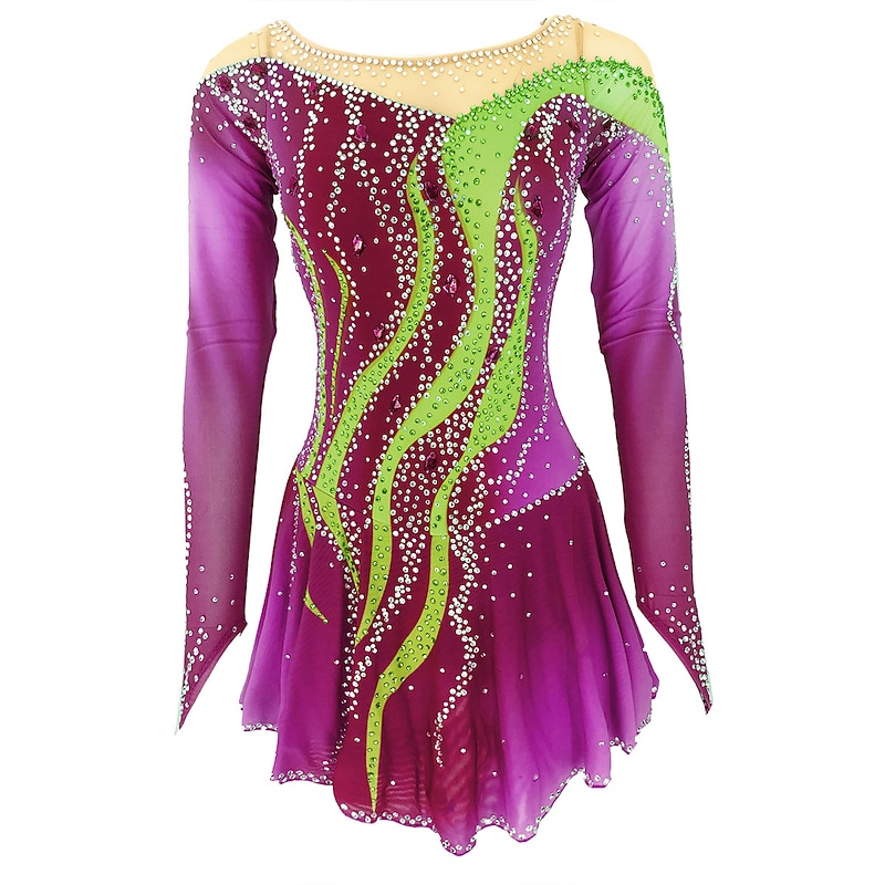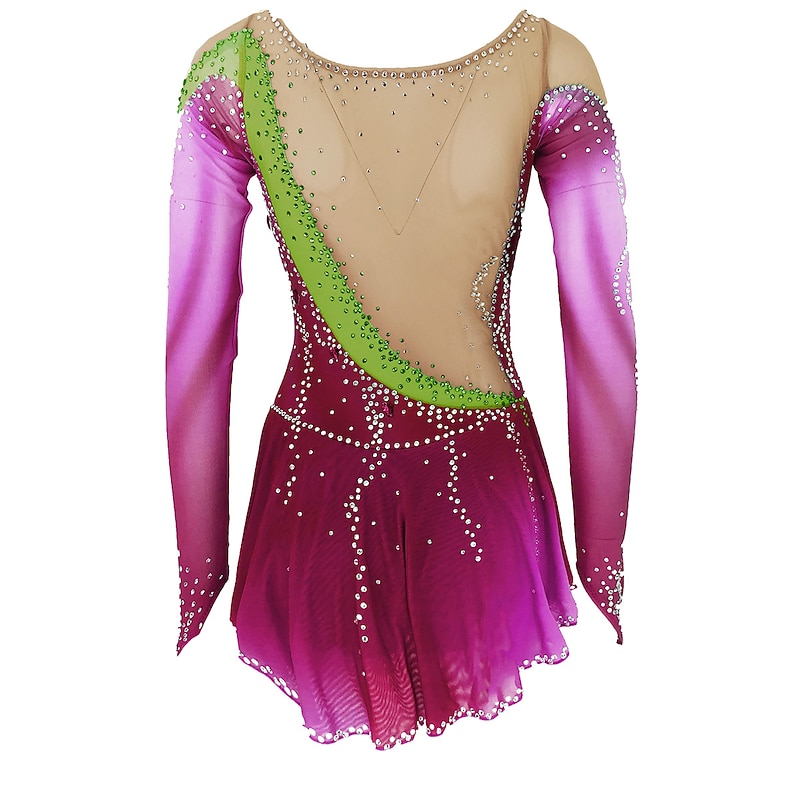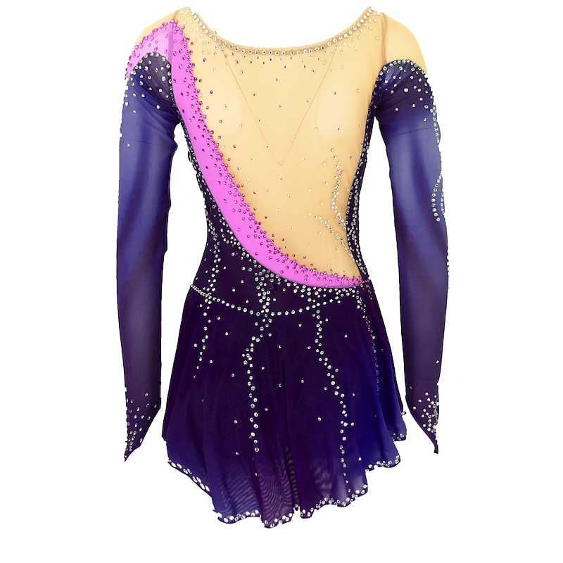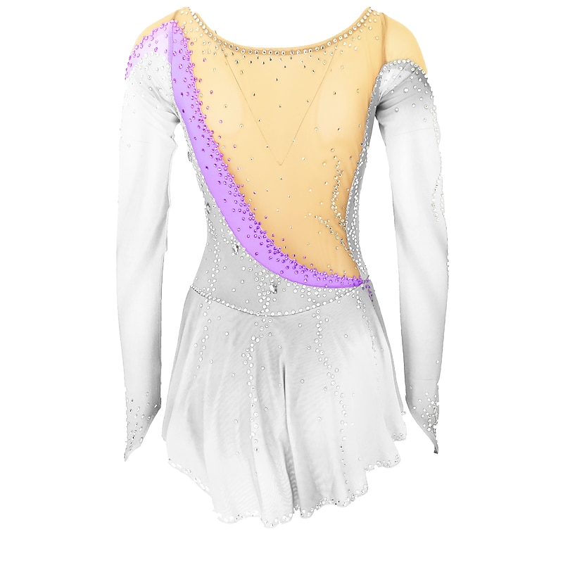 More information about Figure Skating Dress Women's Girls' Ice Skating Dress Outfits Yan pink Violet White / White Open Back Spandex High Elasticity Training Skating Wear Handmade Solid Colored Classic Crystal / Rhinestone