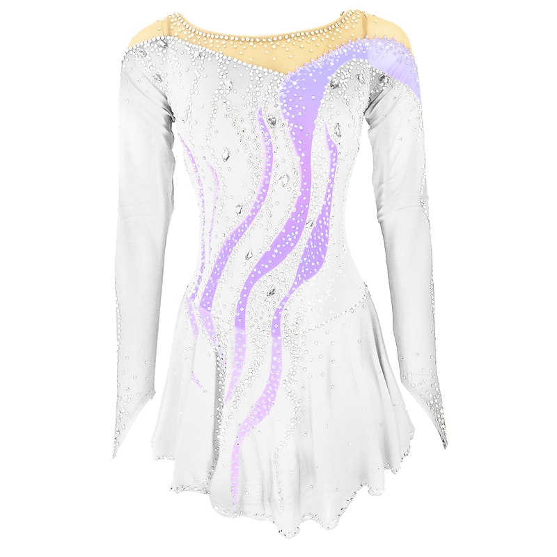 Figure Skating Dress Women's Girls' Ice Skating Dress Outfits Yan pink Violet White / White Open Back Spandex High Elasticity Training Skating Wear Handmade Solid Colored Classic Crystal / Rhinestone 12