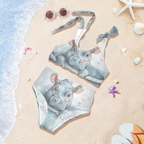HOT ! Watercolor Hippo Cub in Tub Girls Bikini Sets 2 Piece Swimsuits Bathing Suit Swimwear