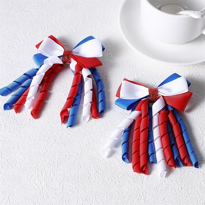 $8.99 - Independence Day Hair Bow Clips 3 Inch Red White Blue Curly Ribbon Hair Clips Handmade School Kids Girls Hair Accessories for 4th of July 2025. Shop for cheap Hair Styling Accessories online? Buy at lightinthebox.com on sale today!