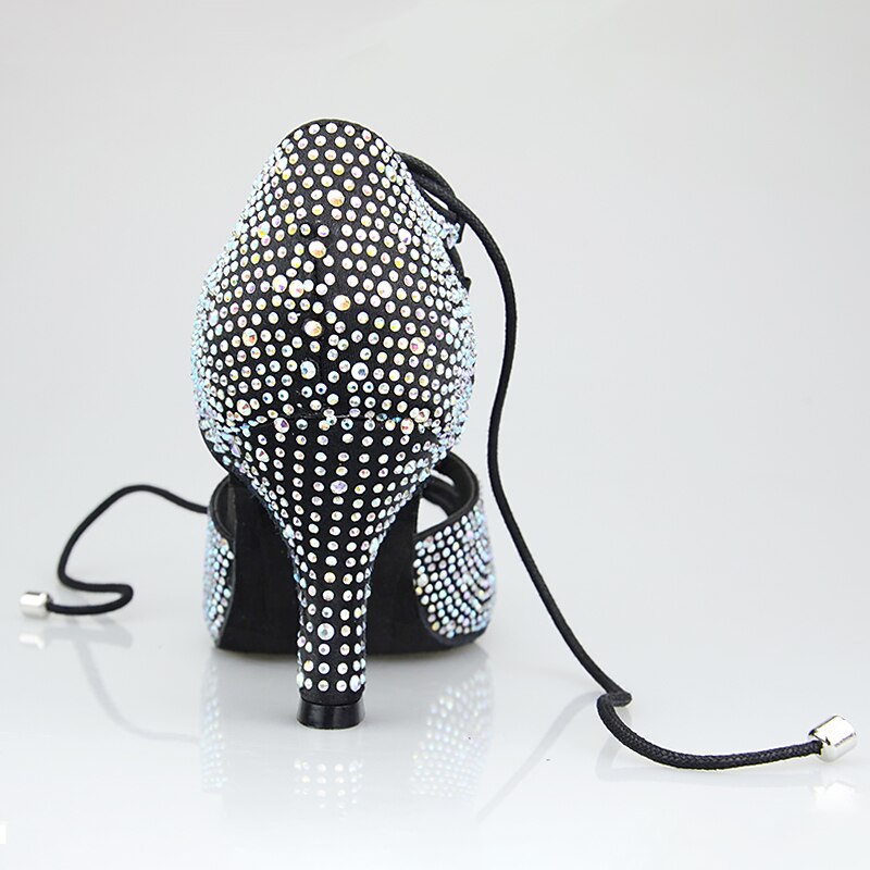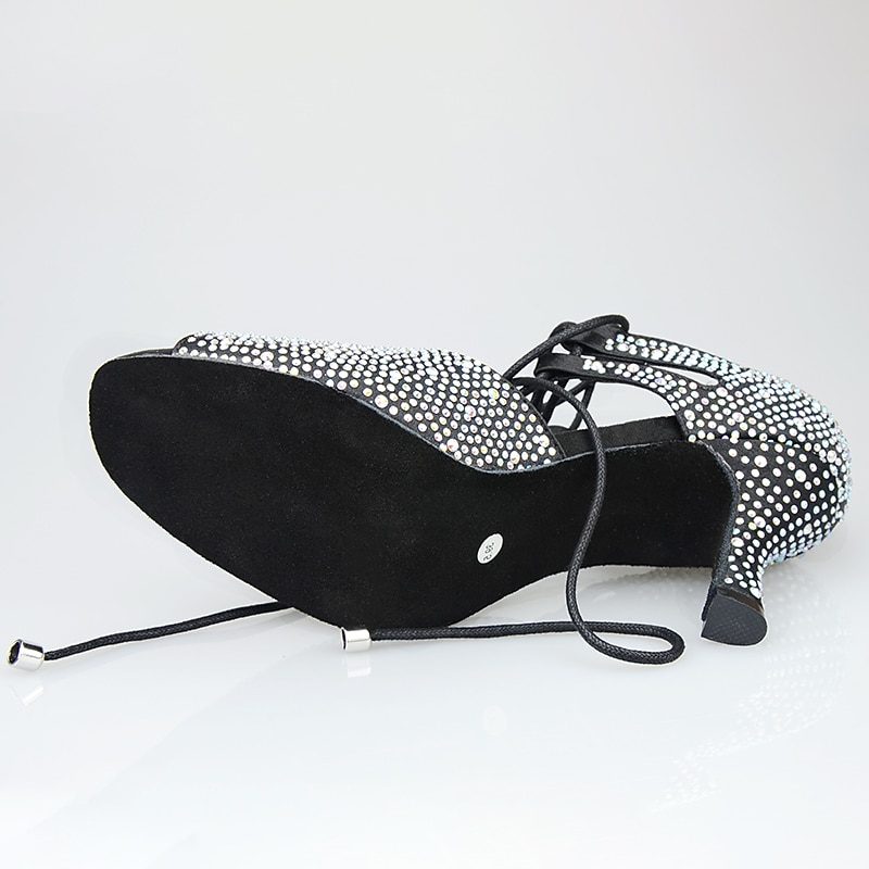 More information about Women's Latin Shoes Party Training Performance Glitter Crystal Sequined Jeweled Heel Sparkling Glitter Crystal / Rhinestone Flared Heel Lace-up Black Almond / Satin