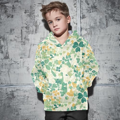 Seamless Made Shamrocks Happy St Unisex Kids Sweatshirts Long Sleeve Hoodies with Kangaroo Pocket 3