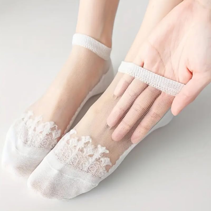 8 Pairs of Thin, Breathable, Transparent Vintage Floral Invisible Boat Socks For Spring And Summer 5