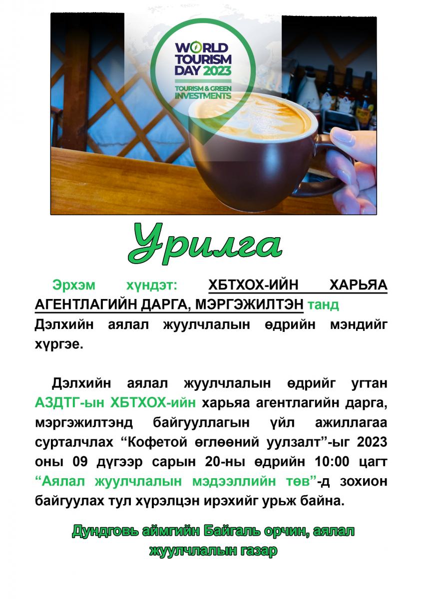 "ДЭЛХИЙН АЯЛАЛ ЖУУЛЧЛАЛЫН ӨДӨР"-Т ЗОРИУЛСАН КОФЕ УУЛЗАЛТ
