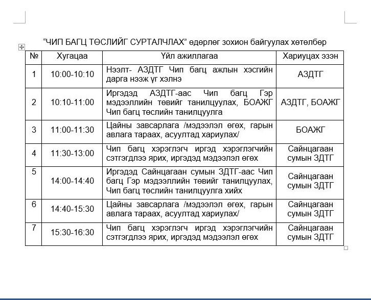 "ЧИП БАГЦ" СУРТАЛЧЛАХ ӨДӨРЛӨГИЙН ХӨТӨЛБӨР